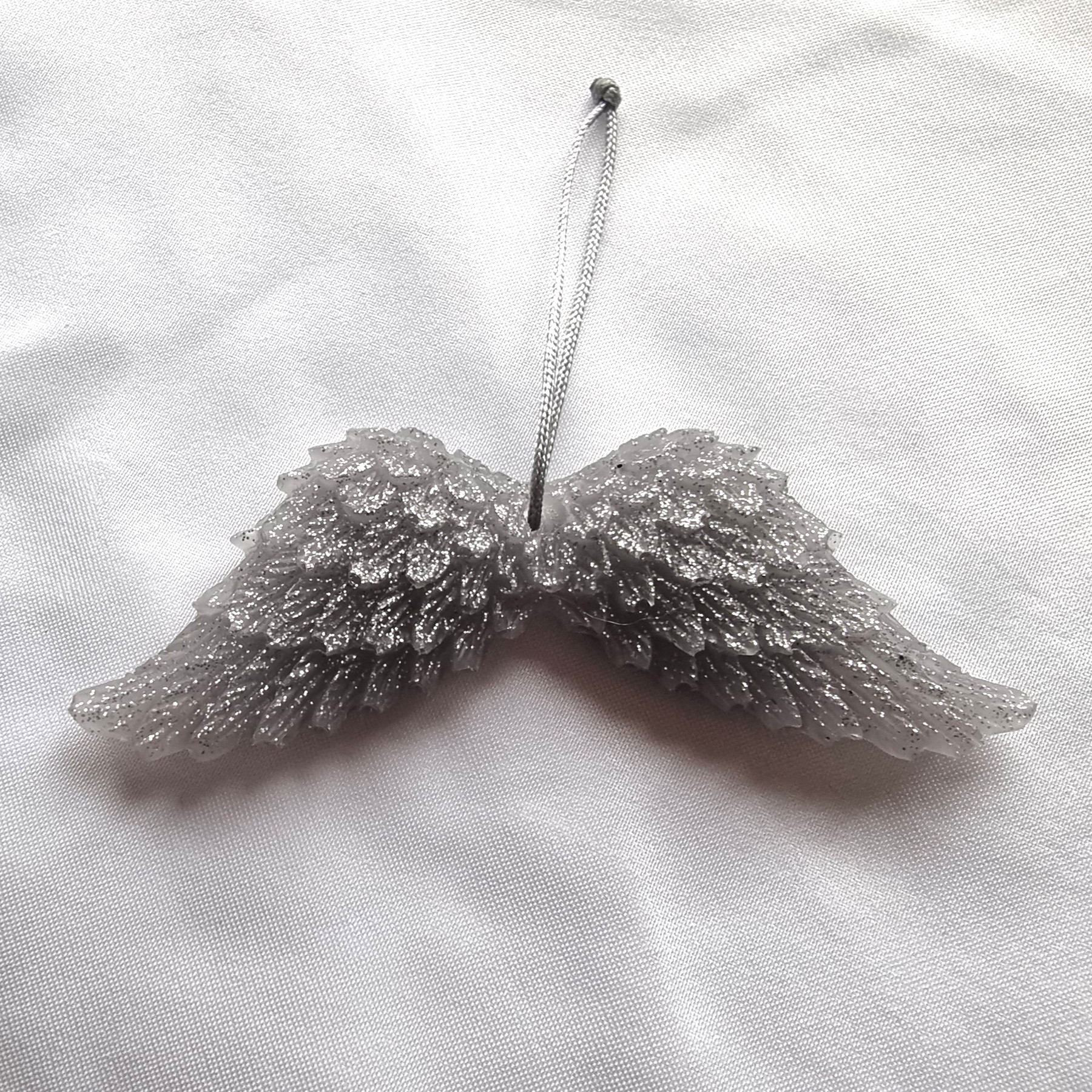 🔸 Matériau : résine époxy, Ailes d’anges à suspendre dans le sapin. Couleur gris pailleté.