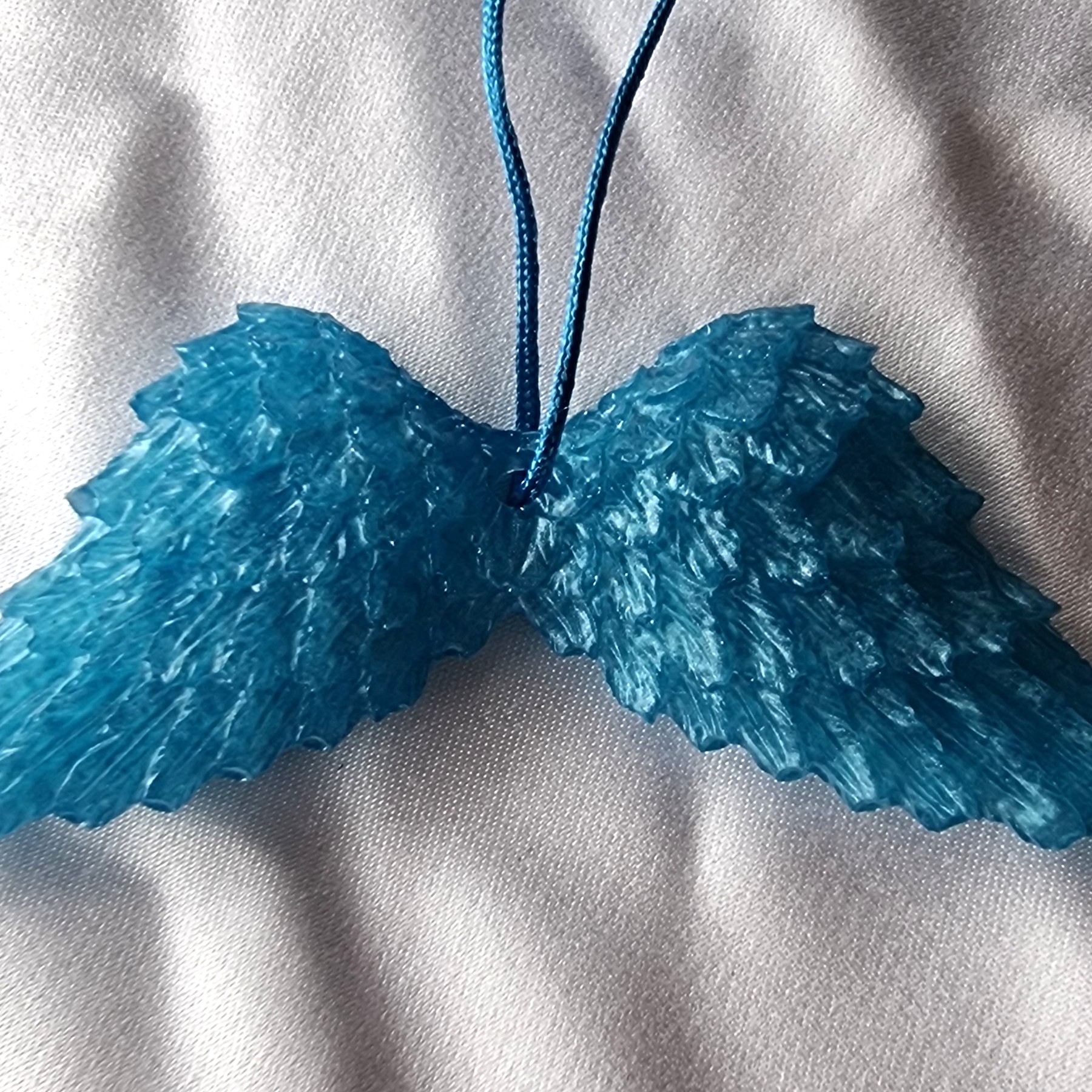 🔸 Matériau : résine époxy, Ailes d’anges à suspendre dans le sapin. Couleur turquoise