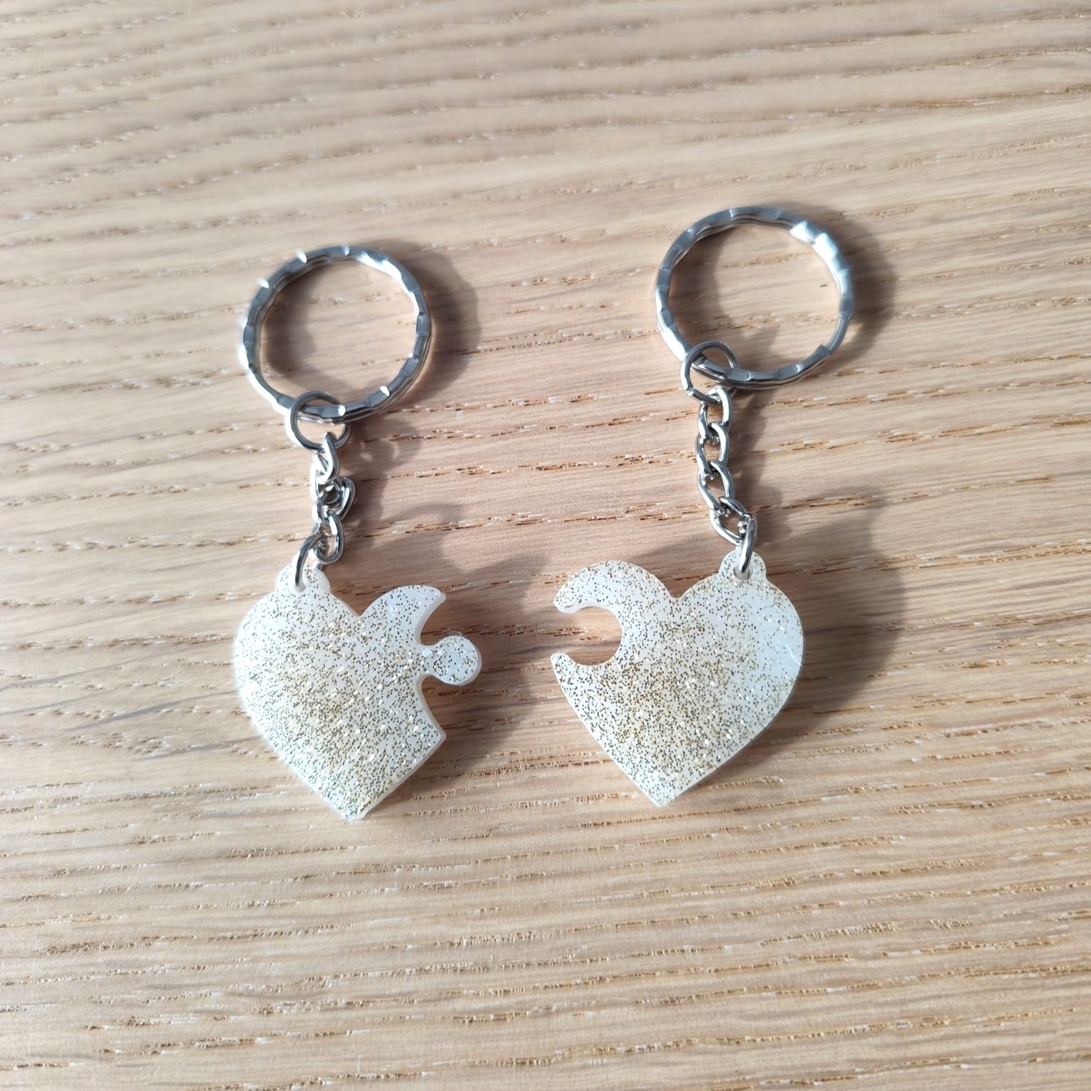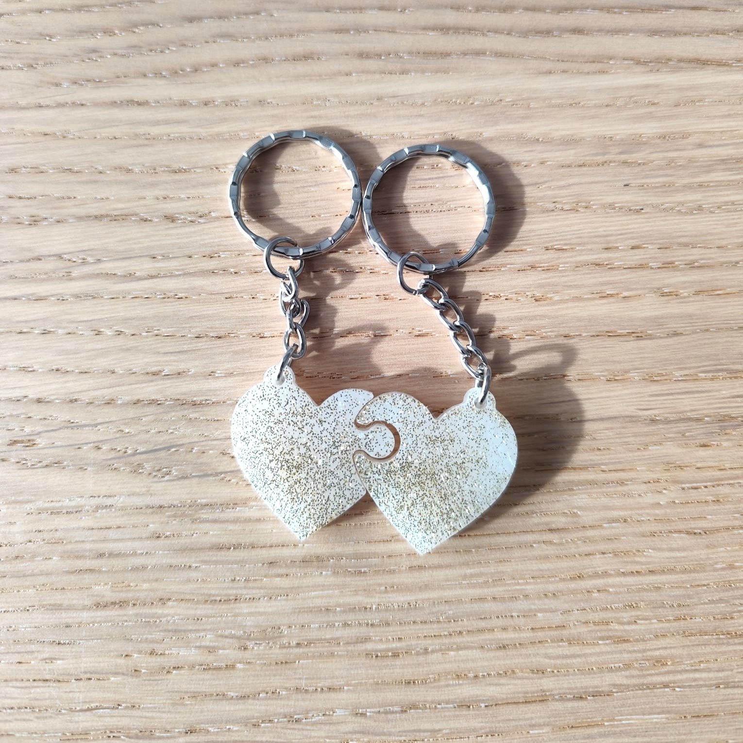 🔸 Matériau : Cœur en résine : double blanc pailleté .A accrocher en déco, dans le sapin ou bien en porte clé, bijou de sac. Fil de nylon ou boucle porte clé au choix.