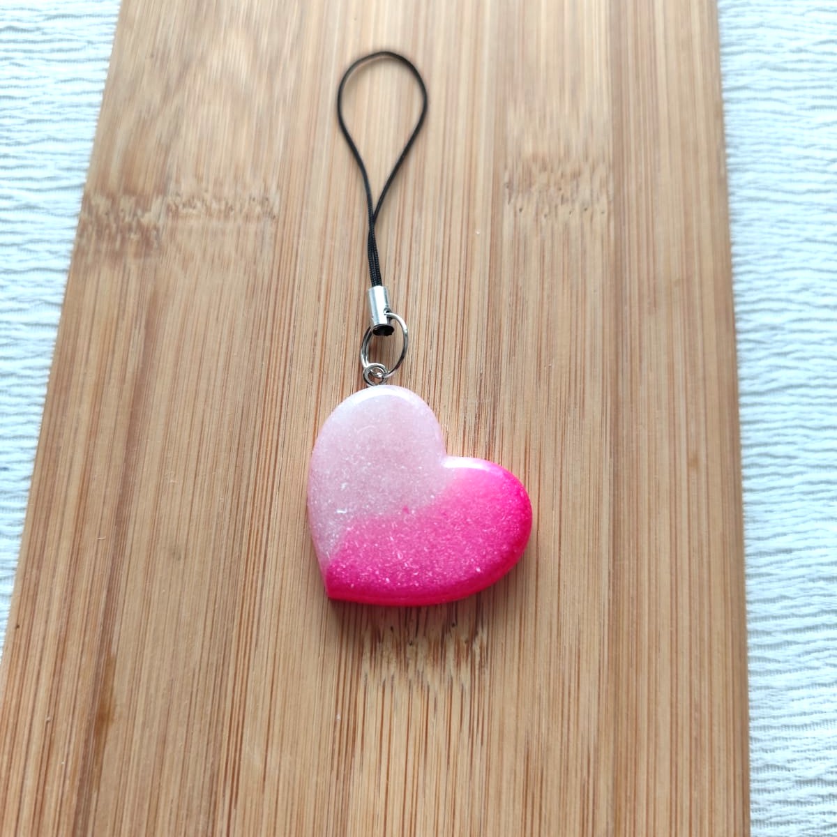 🔸 Matériau : Cœur en résine : rose et blanc. A accrocher en déco, dans le sapin ou bien en porte clé, bijou de sac. Fil de nylon ou boucle porte clé au choix.