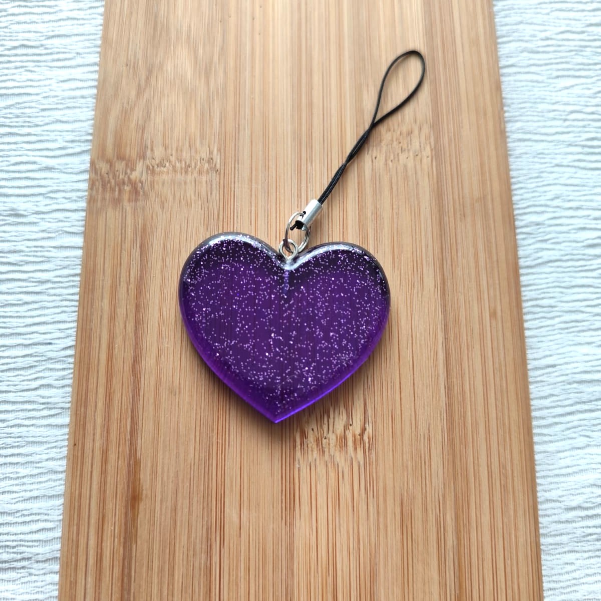 🔸 Matériau : Cœur en résine : violet pailleté. A accrocher en déco, dans le sapin ou bien en porte clé, bijou de sac. Fil de nylon ou boucle porte clé au choix.
