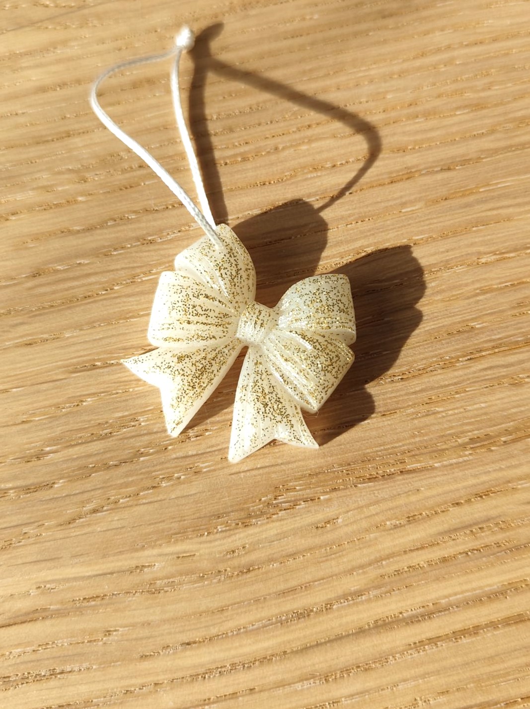 Plongez dans la magie de Noël avec Les Nœuds du Bonheur, une collection de décorations de sapin en résine entièrement faites à la main.