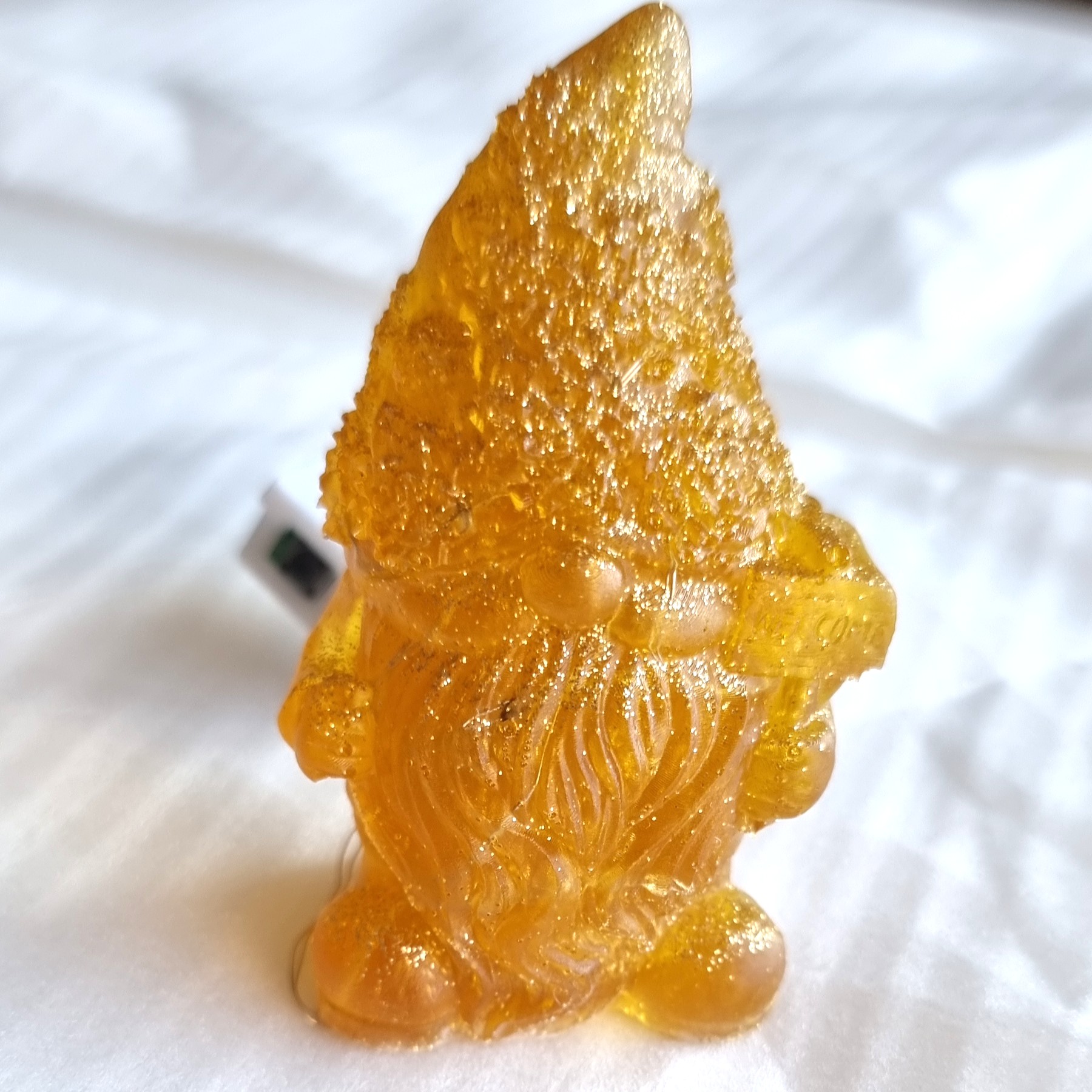🔸 Matériau : résine époxy, lumineux paillettes dorées.