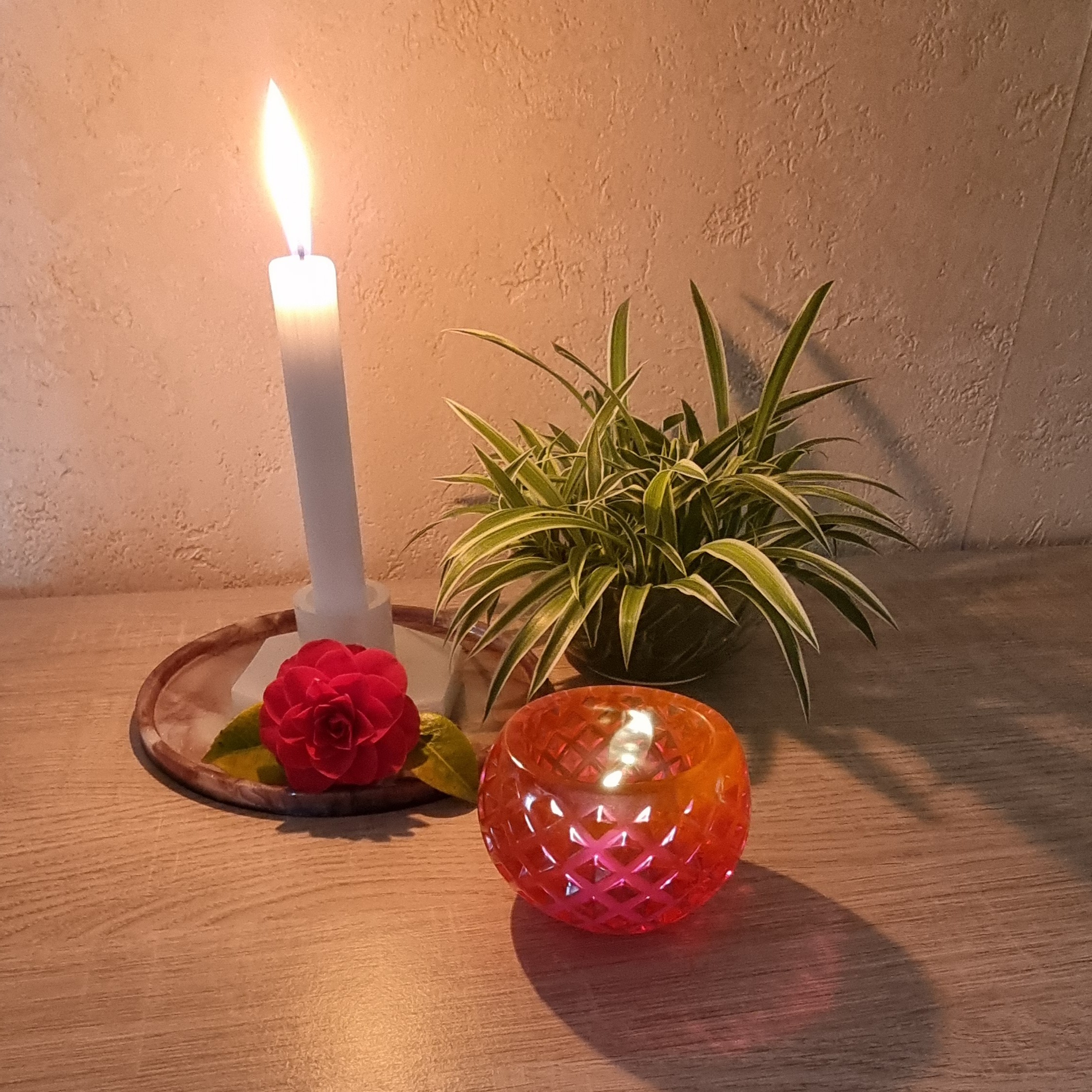 Chaque pièce est unique, créée à la main avec soin, en connexion avec l’intuition et la symbolique des couleurs. Auréa n’est pas un simple photophore : c’est un point d’ancrage lumineux, un éclat de conscience.